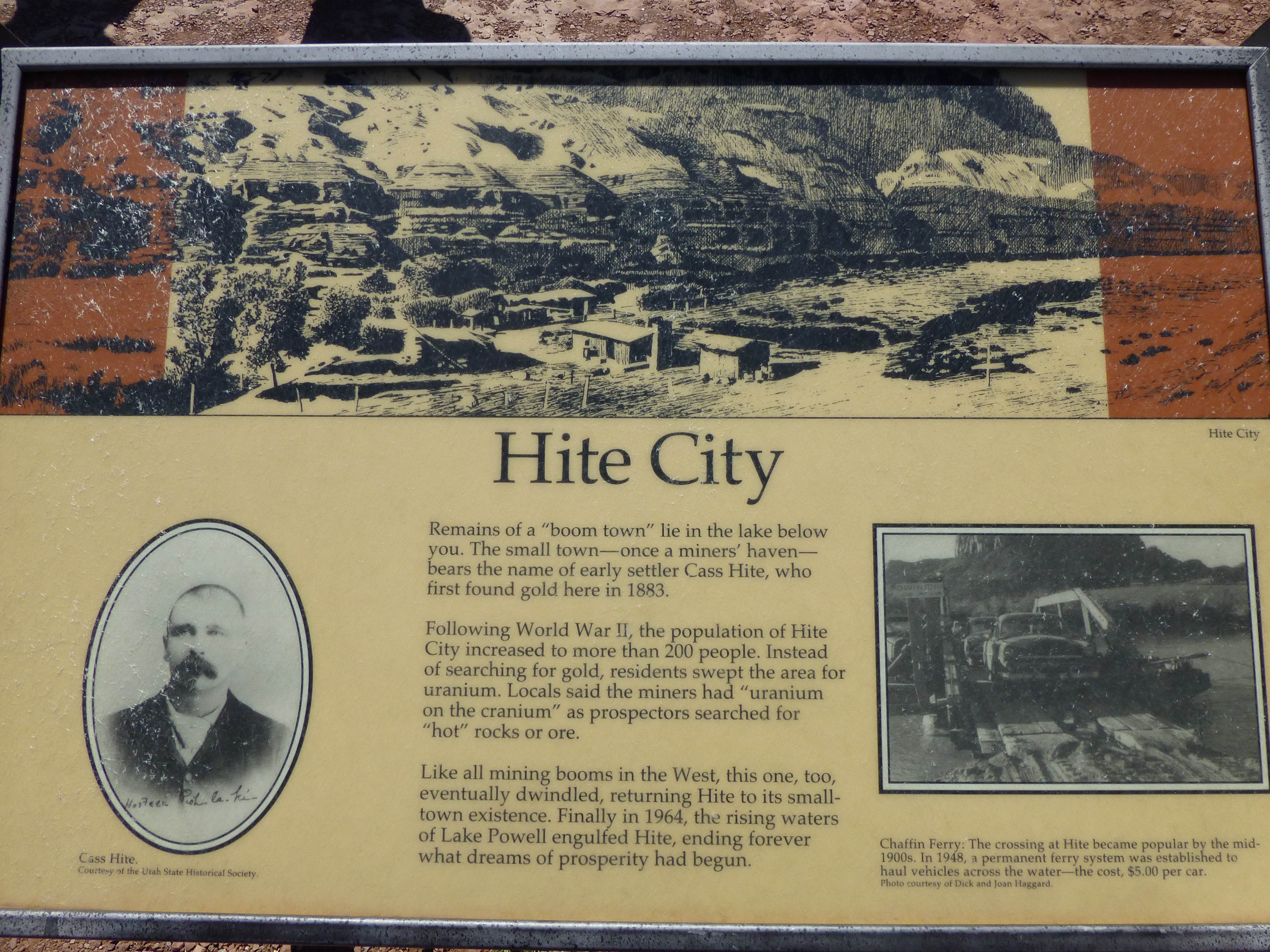 Like all mining booms in the West, this one, too, eventually dwindled, returning Hite to its small-town existence. Finally in 1964, the rising waters of Lake Powell engulfed Hite, ending forever what dreams of prosperity had begun.