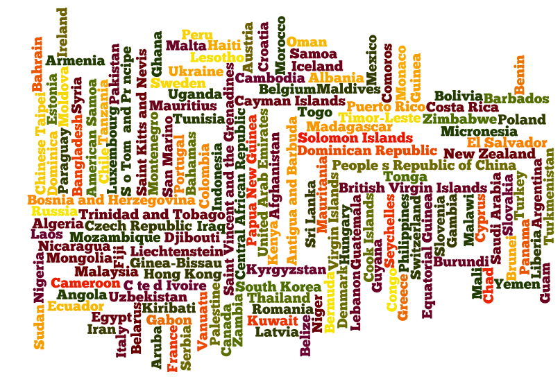 Afghanistan ; Albania ; Algeria ; American Samoa ; Andorra ; Angola ; Antigua and Barbuda ; Argentina ; Armenia ; Aruba ; Australia ; Austria ; Azerbaijan ; Bahamas ; Bahrain ; Bangladesh ; Barbados ; Belarus ; Belgium ; Belize ; Benin ; Bermuda ; Bhutan ; Bolivia ; Bosnia and Herzegovina ; Botswana ; Brazil ; British Virgin Islands ; Brunei ; Bulgaria ; Burkina Faso ; Burundi ; Cambodia ; Cameroon ; Canada ; Cape Verde ; Cayman Islands ; Central African Republic ; Chad ; Chile ; Chinese Taipei ; Colombia ; Comoros ; Congo ; Cook Islands ; Costa Rica ; Côte d’Ivoire ; Croatia ; Cuba ; Cyprus ; Czech Republic ; Democratic Republic of the Congo ; Denmark ; Djibouti ; Dominica ; Dominican Republic ; Ecuador ; Egypt ; El Salvador ; Equatorial Guinea ; Eritrea ; Estonia ; Ethiopia ; Fiji ; Finland ; France ; Gabon ; Gambia ; Georgia ; Germany ; Ghana ; Ginea-Bissau ; Great Britain ; Greece ; Grenada ; Guam ; Guatemala ; Guinea ; Guyana ; Haiti ; Honduras ; Hong Kong ; Hungary ; Iceland ; India ; Indonesia ; Iran ; Iraq ; Ireland ; Israel ; Italy ; Jamaica ; Japan ; Jordan ; Kazakhstan ; Kenya ; Kiribati ; Kuwait ; Kyrgyzstan ; Laos ; Latvia ; Lebanon ; Lesotho ; Liberia ; Libya ; Liechtenstein ; Lithuania ; Luxembourg ; Macedonia ; Madagascar ; Malawi ; Malaysia ; Maldives ; Mali ; Malta ; Marshall Islands ; Mauritania ; Mauritius ; Mexico ; Micronesia ; Moldova ; Monaco ; Mongolia ; Montenegro ; Morocco ; Mozambique ; Myanmar ; Namibia ; Nauru ; Nepal ; Netherlands ; New Zealand ; Nicaragua ; Niger ; Nigeria ; North Korea ; Norway ; Oman ; Pakistan ; Palau ; Palestine ; Panama ; Papua New Guinea ; Paraguay ; People’s Republic of China ; Peru ; Philippines ; Poland ; Portugal ; Puerto Rico ; Qatar ; Romania ; Russia ; Rwanda ; Saint Kitts and Nevis ; Saint Lucia ; Saint Vincent and the Grenadines ; Samoa ; San Marino ; São Tomé and Príncipe ; Saudi Arabia ; Senegal ; Serbia ; Seychelles ; Sierra Leone ; Singapore ; Slovakia ; Slovenia ; Solomon Islands ; Somalia ; South Africa ; South Korea ; Spain ; Sri Lanka ; Sudan ; Suriname ; Swaziland ; Sweden ; Switzerland ; Syria ; Tajikistan ; Tanzania ; Thailand ; Timor-Leste ; Togo ; Tonga ; Trinidad and Tobago ; Tunisia ; Turkey ; Turkmenistan ; Tuvalu ; Uganda ; Ukraine ; United Arab Emirates ; United States ; Uruguay ; Uzbekistan ; Vanuatu ; Venezuela ; Vietnam ; Virgin Islands ; Yemen ; Zambia ; Zimbabwe