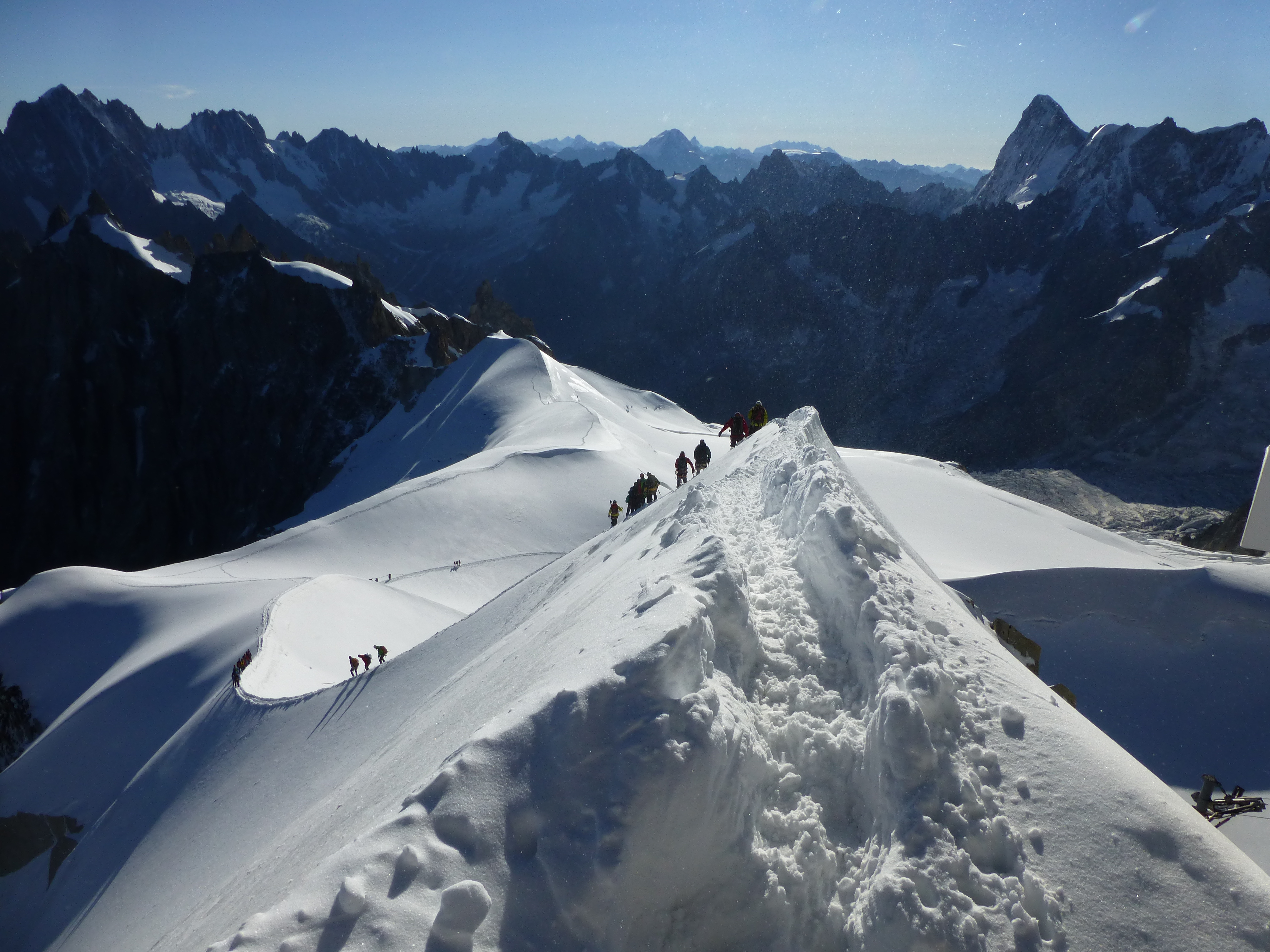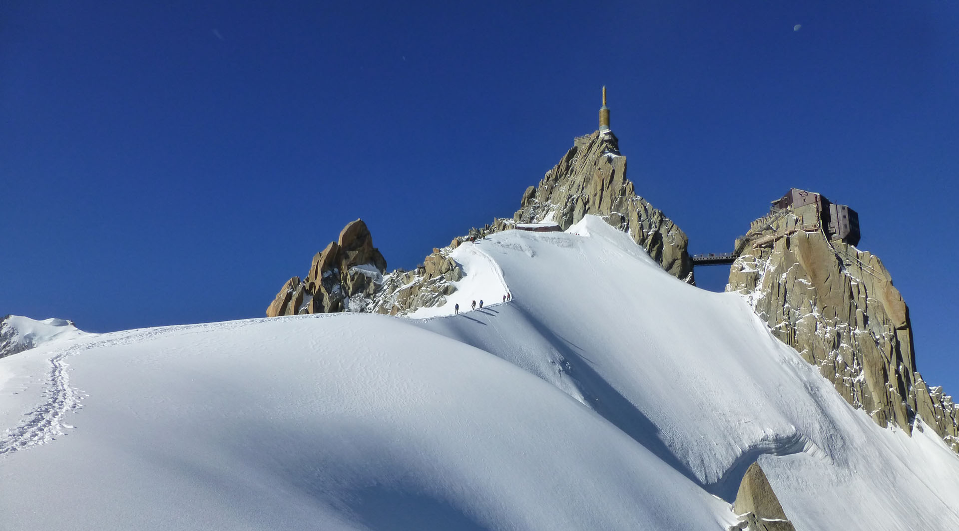Aiguille du Midi starting point for many routes like Pointe Lachenal, Arete des Cosmiques.