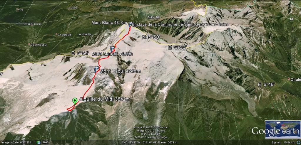 When we have climbed the Mont Blanc 4810m I have used my Garmin Forerunner 910XT to keep a track of each GPS position during all the course. This has allowed me using Google Earth to design the path used