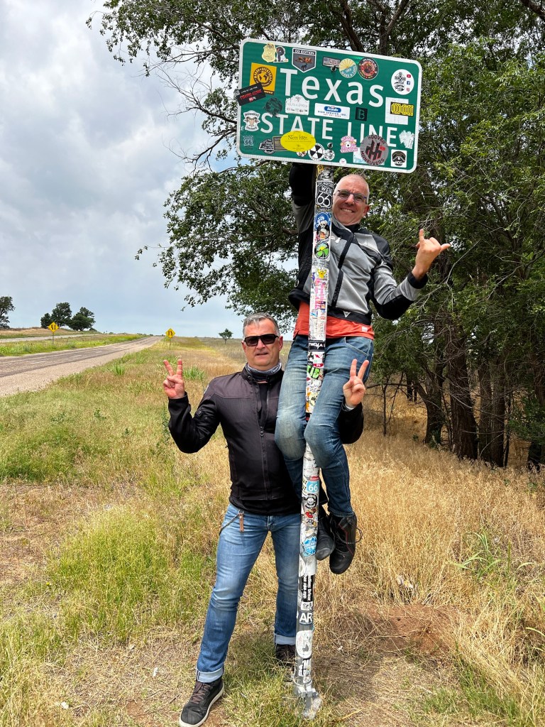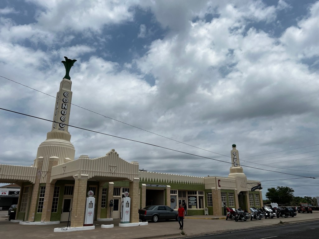 Notre parcours du jour nous a menés d’Oklahoma City à Amarillo, couvrant 437 km à moto sur des tronçons de route nationale et de la légendaire Route 66. En chemin, nous avons fait des arrêts à divers points d’intérêt emblématiques. Heureusement, nous avons réussi à éviter la pluie, ce qui a rendu notre voyage encore plus agréable.