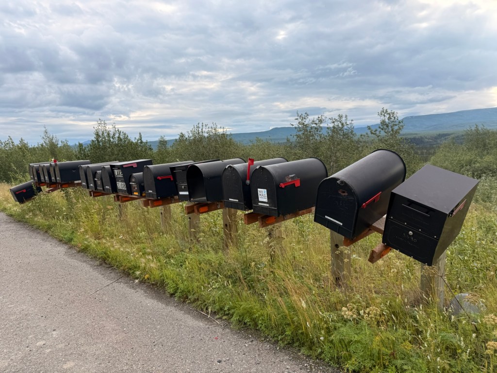 Un peu plus loin, on s’est arrêtés brièvement pour prendre une photo des boîtes aux lettres perdues au milieu de nulle part – une scène typique et presque irréelle.