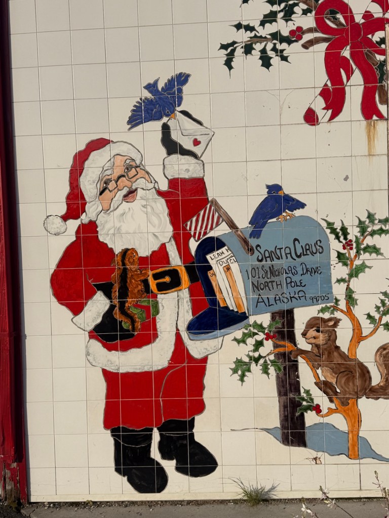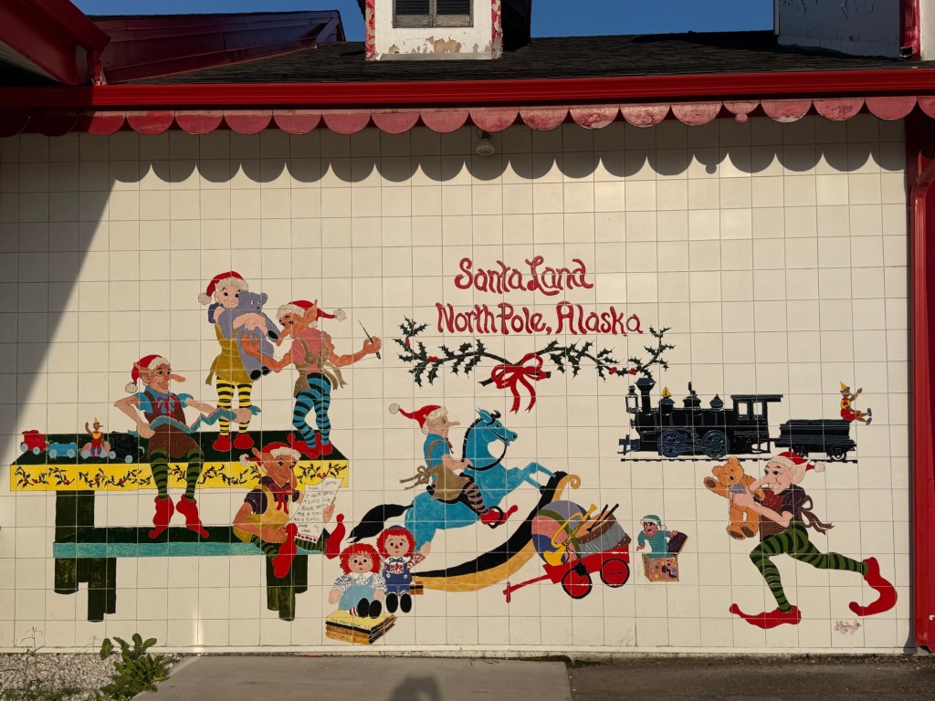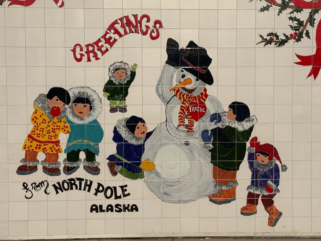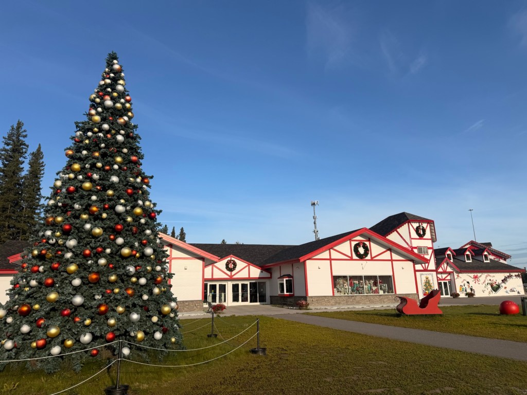 Première halte un peu plus tard au Pôle Nord – oui, il y a bien un Pôle Nord en Alaska ! On en a profité pour visiter la maison du Père Noël, ambiance magique et quelques photos à la clé.