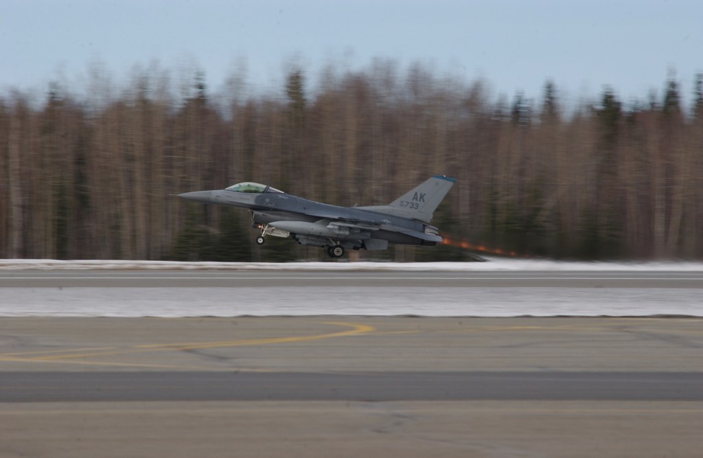 La Eielson Air Force Base a été construite pendant la Seconde Guerre mondiale et porte le nom du capitaine Carl Ben Eielson, pionnier de l’aviation en Alaska. Elle est aujourd’hui l’un des sites majeurs pour les exercices militaires conjoints, comme le Red Flag – Alaska, où des forces aériennes de plusieurs pays viennent s’entraîner dans les vastes étendues du Grand Nord. Elle abrite notamment des avions de chasse F-35 et F-16, symboles de la puissance aérienne américaine.