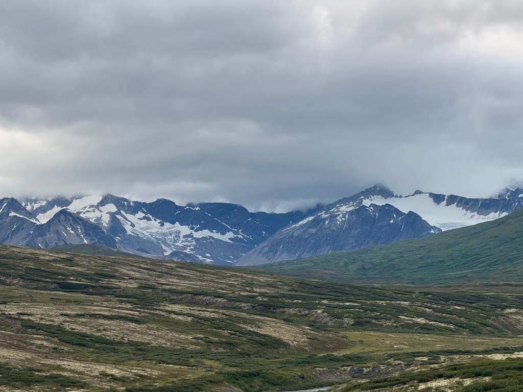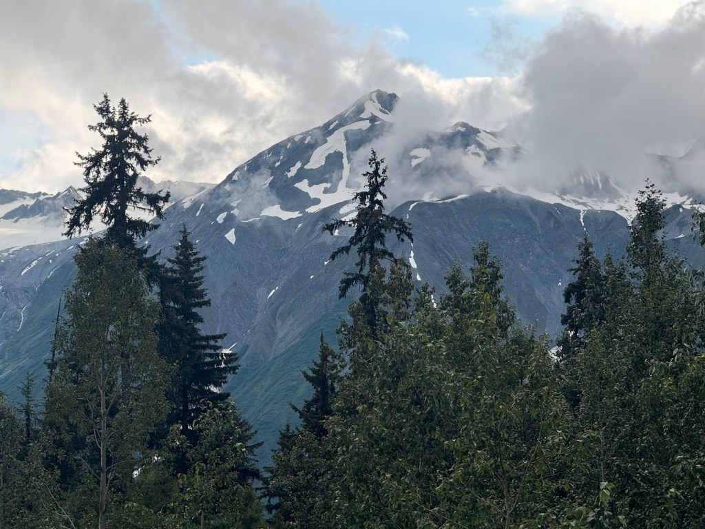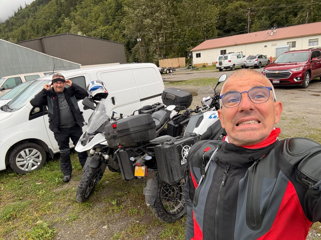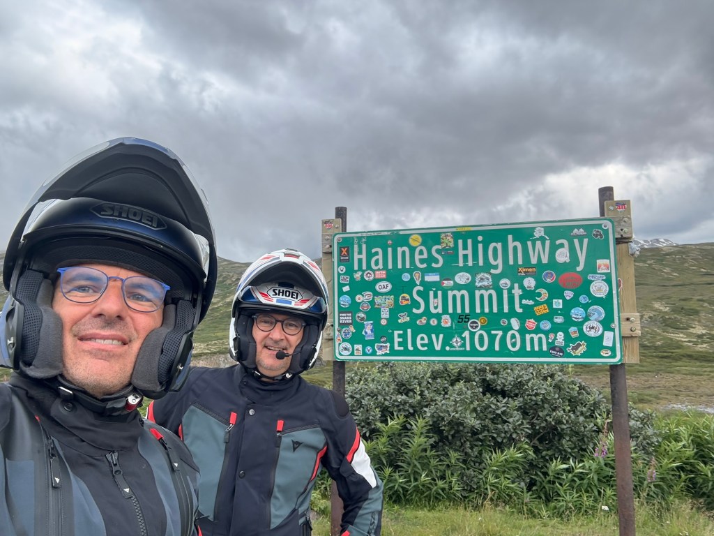 Après notre traversée, nous avons repris la route pour 245 km en direction de Haines Junction. Cette étape fut l’une des plus grandioses de notre voyage. Elle a débuté par de superbes paysages côtiers, avant de s’enfoncer dans l’intérieur des terres du Yukon, dévoilant des reliefs spectaculaires à chaque virage.
